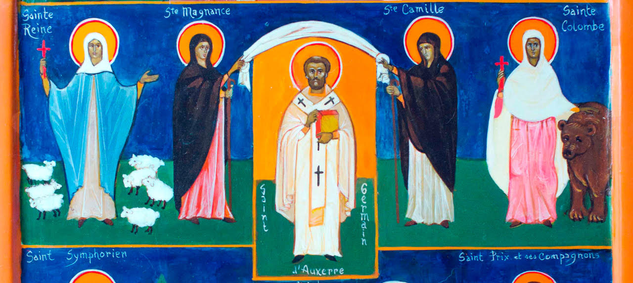 L’église est au premier étage. Au rez-de-chaussée, vous pouvez admirer des fresques relatant la vie de saint Germain d’Auxerre.