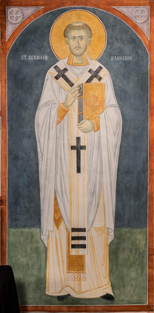 Des nouvelles alarmantes parviennent aux évêques des Gaules en provenance de Grande -Bretagne : l’erreur pélagienne avait gagné les populations de ces contrées. Un concile fut réuni, qui décida d’envoyer ensemble Saint Germain d’Auxerre et Saint Loup de Troyes pour combattre cette hérésie et rétablir la foi orthodoxe.